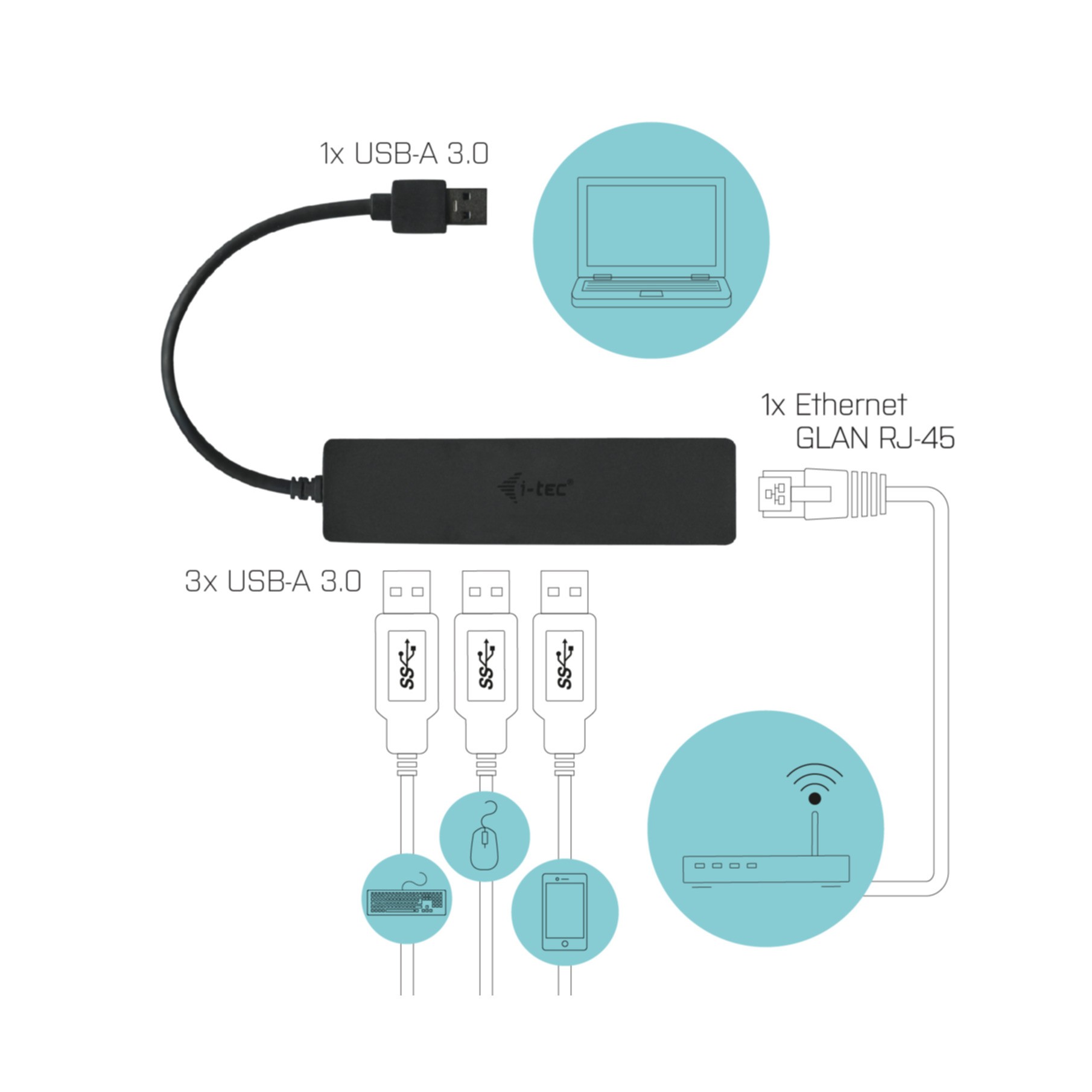 i-tec USB-C Slim HUB 3-Port mit Gigabit Ethernet Adapter U3GL3SLIM